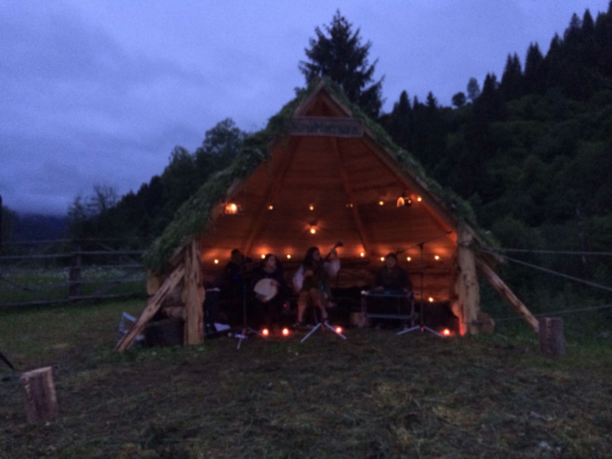 Seara, cand am inceput cantarile, Natura a fost generoasa cu noi, in sensul ca s-a oprit ploaia. Dar a trebuit sa decalam cu o ora concertele, sa fim siguri ca s-a terminat cu toti stropii. Clar ca “incantatiile” celor prezenti au sensibilizat pe cineva acolo sus… sau jos… sau dincolo. Cam frig insa pentru artistii care au avut ceva treaba cu degetele jucause pe corzile instrumentelor, insa am avut lumanari prin apropiere, deci am scos-o cumva, intr-un fel.
